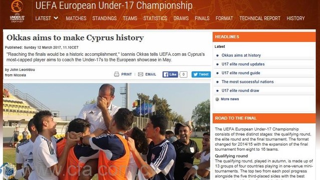 Με την Εθνική μας ομάδα των Παίδων U-17 και τη συμμετοχή της στον Elite Round του Ευρωπαϊκού Πρωταθλήματος που αρχίζει την Τετάρτη στην Πάφο ασχολείται η ιστοσελίδα της UEFA.