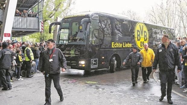 Με επίσημη ανακοίνωση η Μπορούσια Ντόρτμουντ έκανε γνωστό πως εκρηκτικά έσκασαν δίπλα από το πούλμαν της ομάδας. Ένας τραυματίας μέχρι στιγμής.