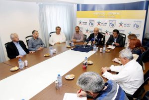 Από αριστερά, Γιάννος Οκκάς, Χάρης Λοϊζίδης, Δημήτρης Αλετράρης στη σημερινή συνέντευξη τύπου.