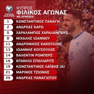 Το αντιπροσωπευτικό μας συγκρότημα την Παρασκευή θα αντιμετωπίσει το Σαν Μαρίνο. Ο αγώνας θα αρχίσει στις 11:00πμ και θα διεξαχθεί στο Στάδιο «Τάσος Μάρκου» στο Παραλίμνι.