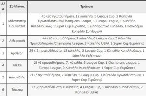 Το φετινό League Cup που κατέκτησε προ μηνών η ομάδα του Ζοζέ Μουρίνιο έφερε τους “κόκκινους διαβόλους” στα ίσια με την ομάδα του Μέρσεϊσαϊντ και αυτό το τρόπαιο την οδήγησε στην κορυφή για πρώτη φορά στην ιστορία.
