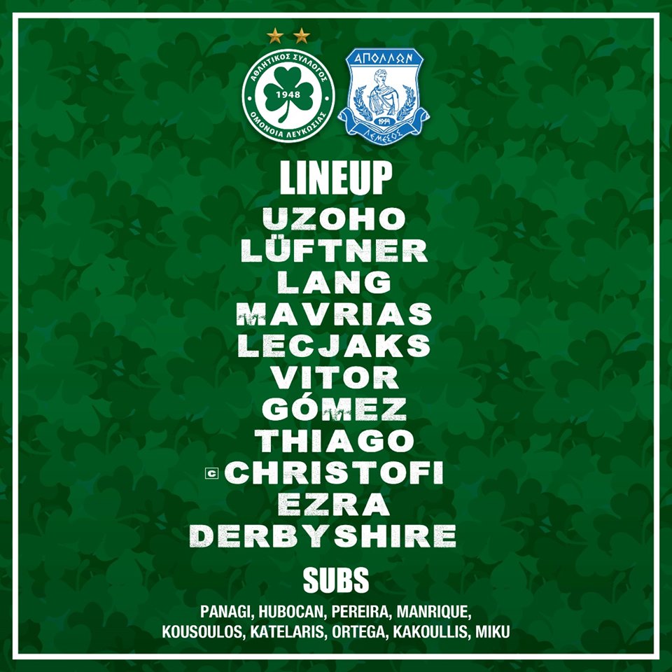 ΟΜΟΝΟΙΑ: Ουζόχο, Λούφτνερ, Λανγκ, Μαυρίας, Λέζιακς, Β. Γκόμες, Ζ. Γκόμες, Τιάγκο, Χριστοφή, Εζρά, Νταρμπισάιαρ. Μοναδικός Κύπριος στην ενδεκάδα των πρασίνων, είναι ο Δημήτρης Χριστοφή.