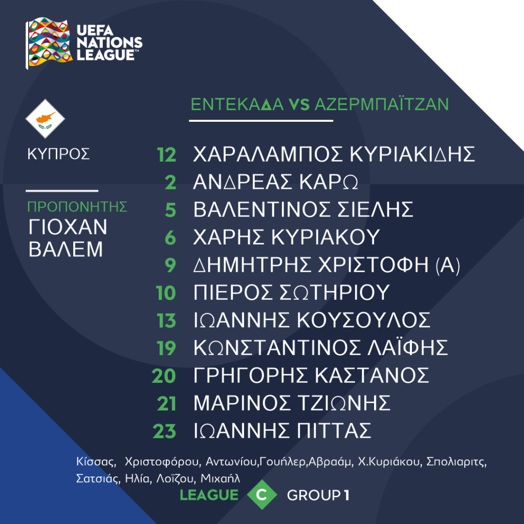 • Πιέρος ,Χ.Κυριάκου και Σιέλης στην 11αδα της Εθνικής κόντρα στο Αζερμπαϊτζάν