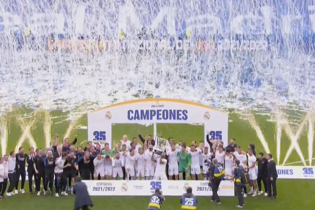 Η Ρεάλ πανηγύρισε το 35ο πρωτάθλημα στην ιστορία της με τη νίκη 4-0 επί της Εσπανιόλ για την 34η αγωνιστική της La Liga, με τον Κάρλο Αντσελότι να σηκώνει τίτλο και στην πέμπτη μεγάλη λίγκα όπου έχει προπονήσει.