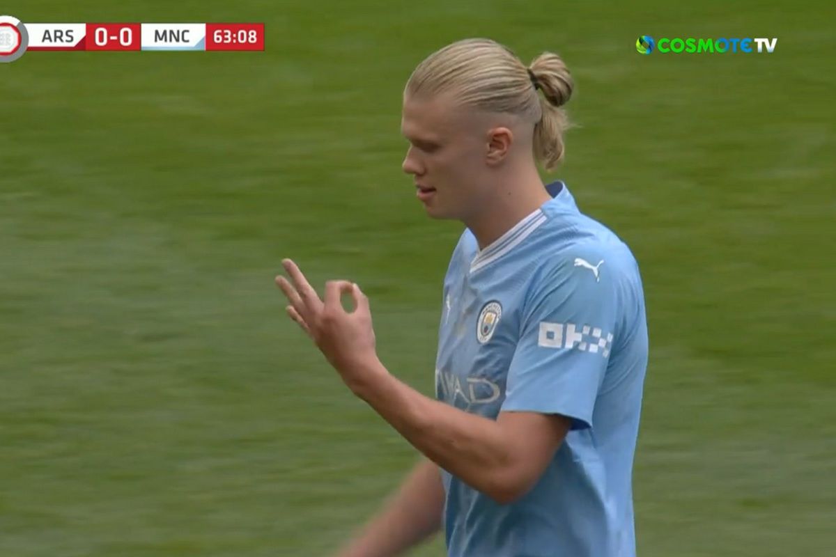 Ο Έρλινγκ Χάαλαντ έδειξε τα τρία του δάχτυλα, όταν οι οπαδοί της Άρσεναλ τον αποδοκίμαζαν την ώρα που γινόταν αλλαγή στο Community Shield.