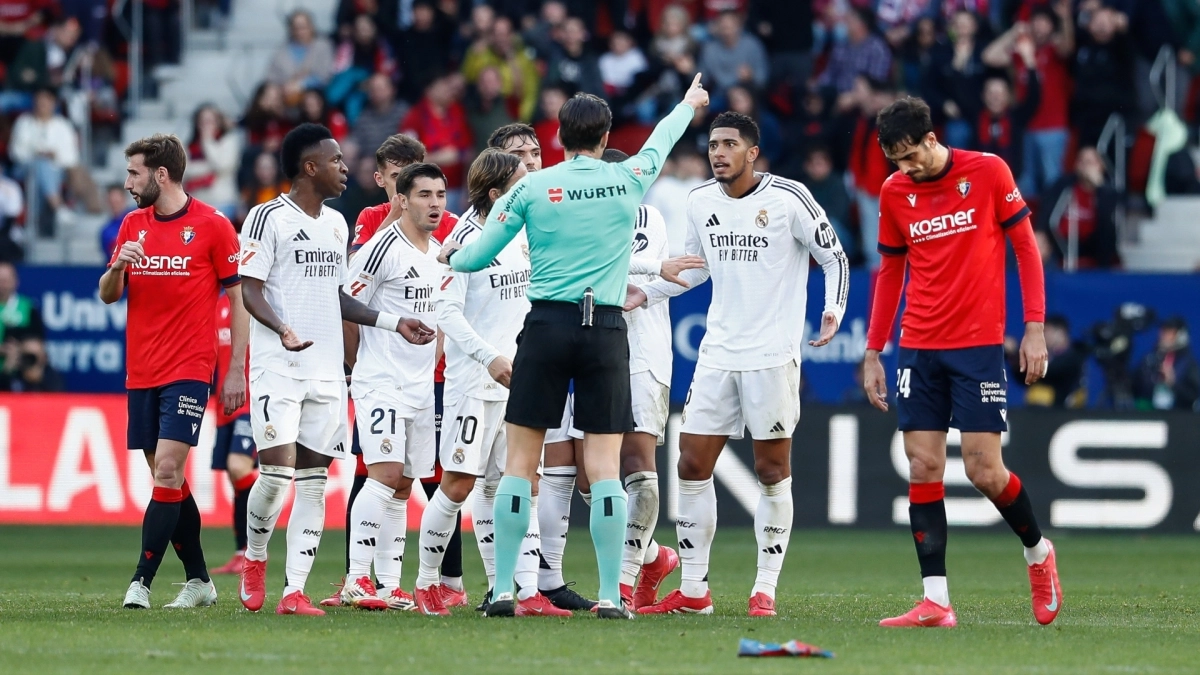 Μέσα σε τρεις αγωνιστικές η Ρεάλ Μαδρίτης είδε τη διαφορά που είχε χτίσει απέναντι σε Ατλέτικο και Μπαρτσελόνα να εξανεμίζεται, με τελευταία «μαχαιριά» την ισοπαλία 1-1 στην έδρα της Οσασούνα. Ενώ οι Μαδριλένοι είχαν προηγηθεί με τον Μπαπέ, η αποβολή του Μπέλινγκχαμ στο 40΄ανέτρεψε τις ισορροπίες και παράλληλα οδήγησε σε νέο γύρο αντιπαραθέσεων στην Ισπανία για τη διαιτησία.