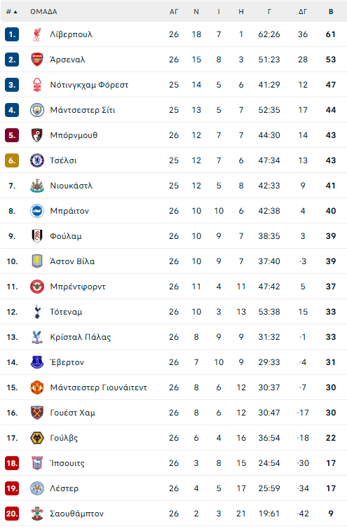 • 23/2 18:30 Μάντσεστερ Σίτι – Λίβερπουλ