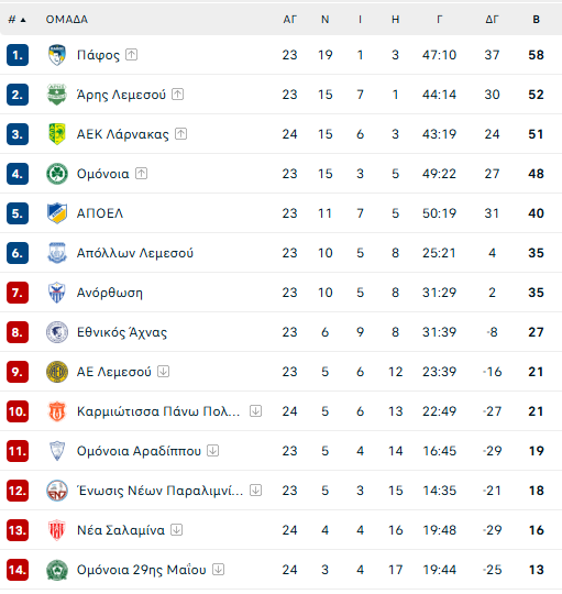 Δύο μάχες με μεγάλο βαθμολογικό ενδιαφέρον. Ομόνοια Αρ.-Εθνικός, Άρης-ΑΕΛ(Πρόγραμμα-βαθμολογία)