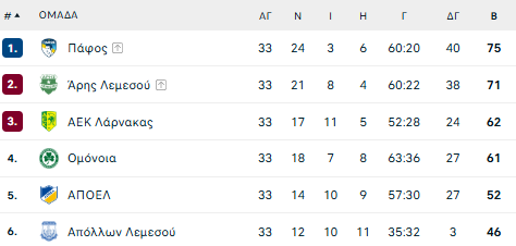 Την Κυριακή ξεχωρίζει στο… μενού το ντέρμπι τίτλου στο «Στέλιος Κυριακίδης» με την Πάφος FC να θέλει τη νίκη για να στεφθεί πρωταθλήτρια κόντρα στον Άρη και φυσικά η ομάδα της Λεμεσού θέλει τη νίκη για να ελπίζει στο θαύμα για τον τίτλο.