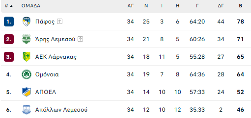 Ακόμα μία λεπτομέρεια που παίζει σημαντικό ρόλο είναι το ότι, στο Europa League θα προκριθεί είτε ο 2ος Άρης εάν κατακτήσει η Πάφος FC το κύπελλο είτε η ΑΕΚ εάν σηκώσει αυτή το τρόπαιο.