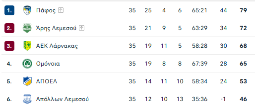Με τις αναμετρήσεις της 10ης και τελευταίας αγωνιστικής, πέφτει απόψε η αυλαία του πρωταθλήματος Α’ κατηγορίας. Τα πάντα έχουν ξεκαθαρίσει (πρωταθλήτρια η Πάφος FC και δευτεραθλητής ο Άρης), με μια μικρή εκκρεμότητα, που έχει να κάνει με την 3η θέση, στην οποία βρίσκεται η ΑΕΚ, αλλά την διεκδικεί και η Ομόνοια, χωρίς να προσφέρει κάποιο ουσιαστικό αντίκρισμα, καθώς και οι δυο ομάδες έχουν εξασφαλίσει ευρωπαϊκό εισιτήριο.