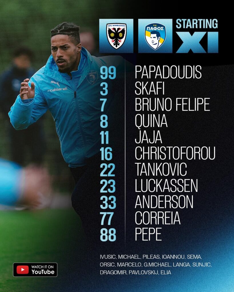 Η Πάφος FC παρατάχθηκε με την ακόλουθη ενδεκάδα: