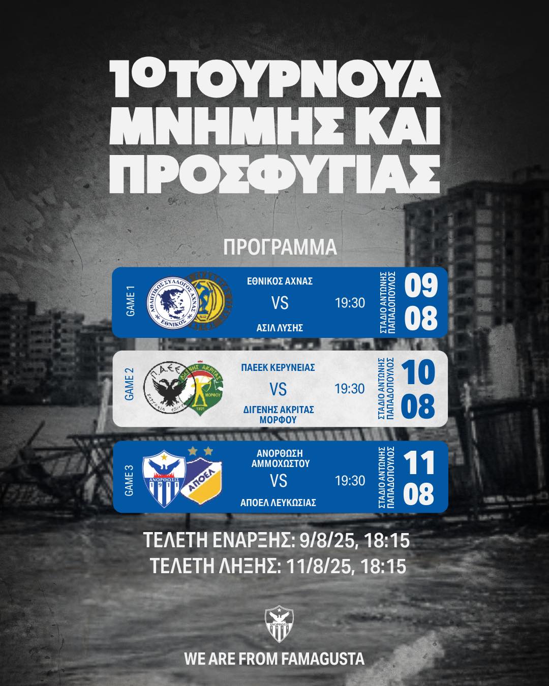 Εθνικός Άχνας, ΑΣΙΛ Λύσης, ΠΑΕΕΚ Κερύνειας και Διγενής Ακρίτας Μόρφου θα ανταμώσουν, μακριά από τις φυσικές τους έδρες, σε μια τελετή τιμής και μνήμης.