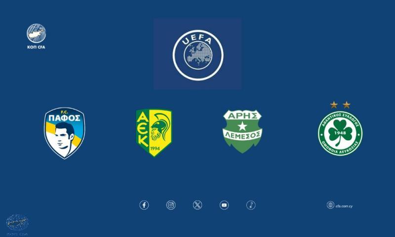 Πάφος F.C., ΑΕΚ Λάρνακας, Άρης Λεμεσού και Ομόνοια Λευκωσίας δίνουν αυτή την εβδομάδα καθοριστικούς αγώνες στις διοργανώσεις της UEFA στις οποίες συμμετέχουν.