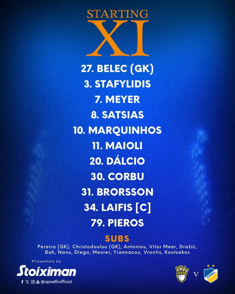 Αυτή την 11άδα επέλεξε ο προπονητής του ΑΠΟΕΛ, Πάμπλο Γκαρσία στο επίσημο ντεμπούτο του κόντρα στην FREEDOM24 Kravasa ΕΝΥ Ύψωνα στο πλαίσιο της πρεμιέρας του πρωταθλήματος.
