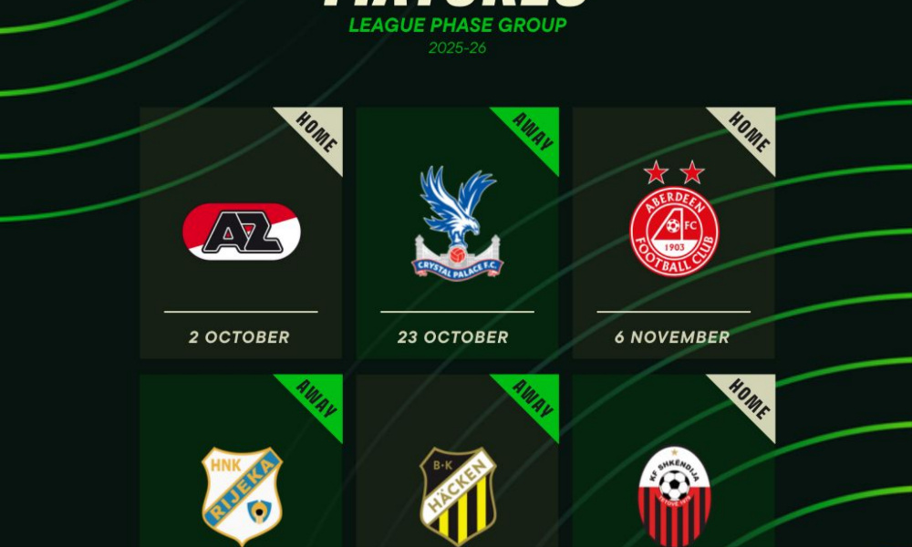 Tο πλήρες πρόγραμμα της ΑΕΚ Λάρνακας με τις ημερομηνίες και τις ώρες στις έξι αγωνιστικές της league phase του UEFA Conference League.
