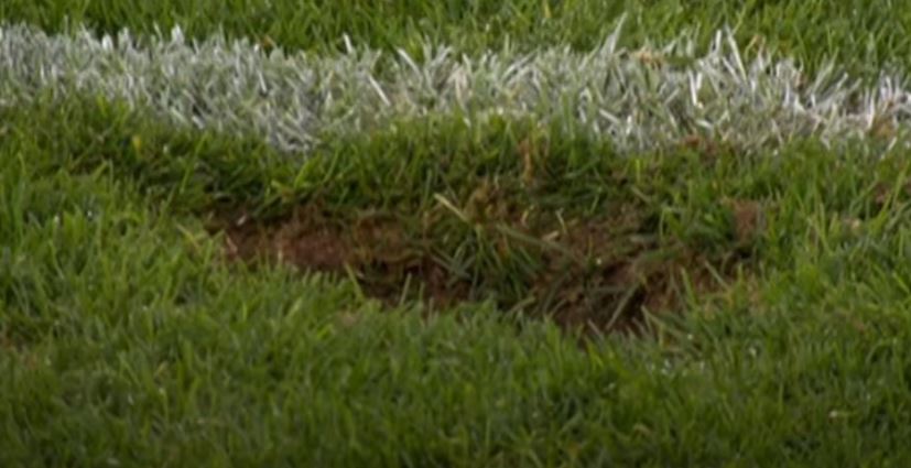 Μια μεγάλη τρύπα στο τερέν του γηπέδου προκάλεσε καθυστέρηση