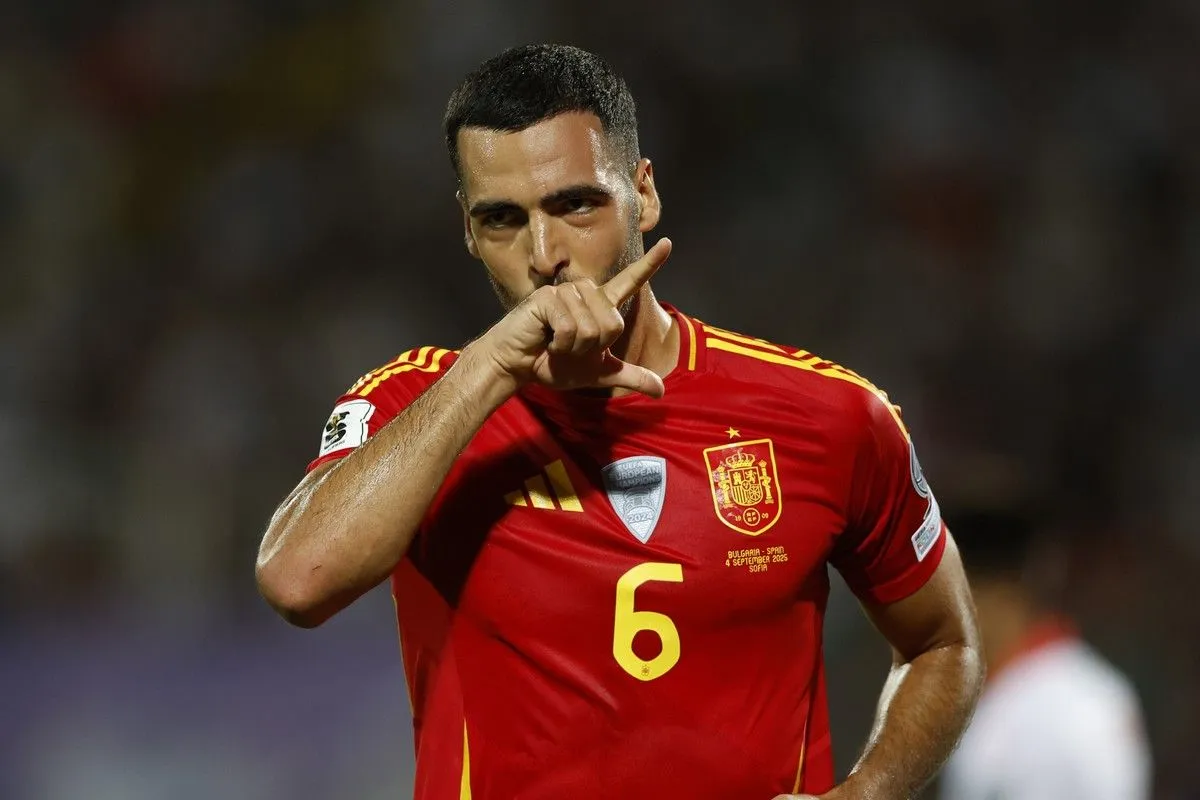 Απέναντι στην Τουρκία , η Ισπανία δεν έδειξε καθόλου οίκτο και υπέταξε την αντίπαλό της με 6-0, έχοντας ως απόλυτο πρωταγωνιστή τον Μικέλ Μερίνο, ο οποίος έκανε μαγικό χατ-τρικ, με την ομάδα του Λουίς Ντε λα Φουέντε να εξασφαλίζει έτσι με περίσσεια άνεση τη δεύτερη νίκη της στον 5ο όμιλο για τα προκριματικά του Π.Κ του 2026.