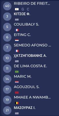 Φαμπιάνο, Κίτσος, Μασούρας, Άιτινγκ, Κουλιμπαλί, Σεμέδο, Χατζητζιοβάνης, Μάριτς, Μαέ, Αγκουζούλ, Εβάντρο