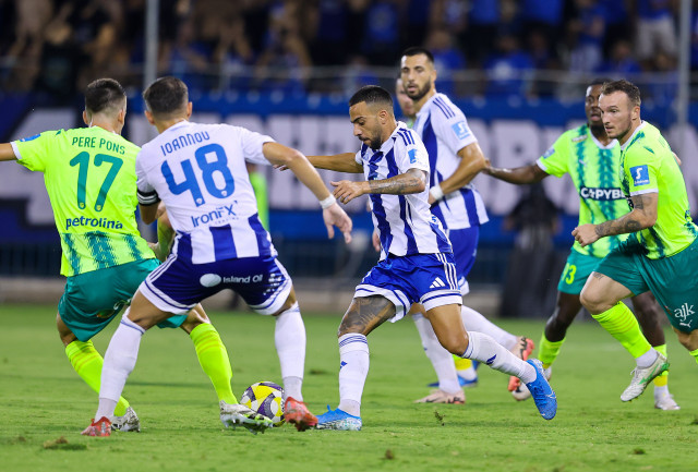 19′ Πισινή κεφαλιά του Φουρτάδο, έδιωξε σε κόρνερ ο Ρομπέρζ προτού η μπάλα φτάσει στον Μάριο Ηλία.