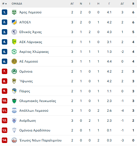 • Συνέχεια με δύο αγώνες. Φαβορί ο Άρης κόντρα στον Ολυμπιακό, μάχη ΕΝΥ Ύψωνα-Ομόνοιας Αραδίππου (πρόγραμμα-συνέχεια -βαθμολογία)