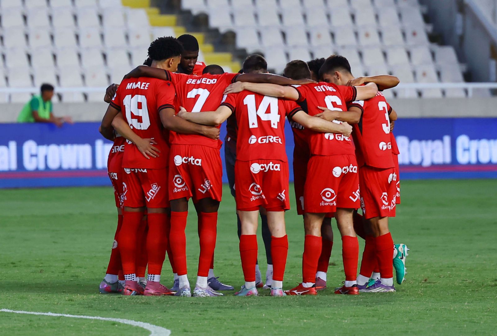 Η αποστολή μας αποτελείται από τους ακόλουθους ποδοσφαιριστές: Φαμπιάνο, Ουζόχο, Κυριακίδης, Ντιουνκού, Κίτσος, Κουλιμπαλί, Άιτινγκ, Σεμέδο, Στεπίνσκι, Χατζηγιοβάννης, Εβάντρο, Μάριτς, Μασούρας, Χαμάς, Σίμιτς, Παναγιώτου, Κούσουλος, Μουσιαλόφσκι, Εράκοβιτς, Ανδρέου, Νεοφύτου, Κωνσταντινίδης, Παναγή.