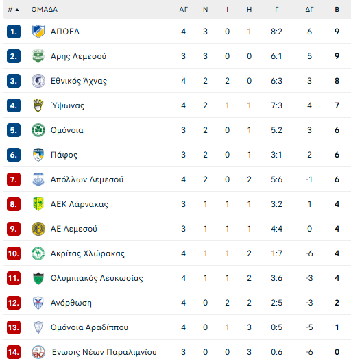 • Τρίποντα για Πάφο -Απόλλωνα και ακολουθούν  τα ντέρμπι της Δευτέρας(πρόγραμμα-βαθμολογία)