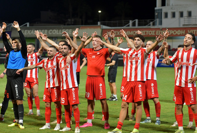 45+8′ ΓΚΟΛ 0-1 η Νέα Σαλαμίνα. Η ομάδα των ερυθρολεύκων άνοιξε το σκορ με κεφαλιά του Κώστα Χαραλάμπους.