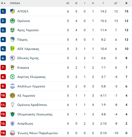 19:00 Απόλλων – Ομόνοια Αραδίππου Cytavision)