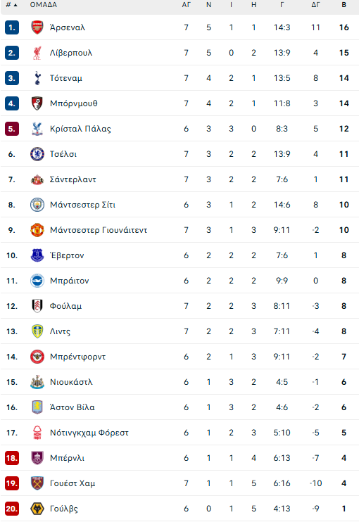 Το πρόγραμμα και τα αποτελέσματα της 7ης αγωνιστικής στην Premier League