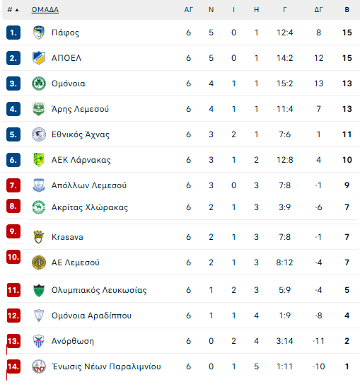 Μετά τους αγώνες της Εθνικής επιστρέφουμε σε ρυθμούς πρωταθλήματος με την 7η αγωνιστικοί να είναι προ των πυλών και να περιλαμβάνει ενδιαφέρουσες αναμετρήσεις που ενδεχομένως να φέρουν και βαθμολογικές ανακατατάξεις και στα ψηλά και στα χαμηλά της βαθμολογίας. Ξεχωρίζει το ντέρμπι της Λεμεσού , Άρης-ΑΕΛ ενώ οι άλλες ομάδες της πρώτης εξάδας είναι φαβορί στους αγώνες αφού αγωνίζονται με αντιπάλους του β΄ ομίλου