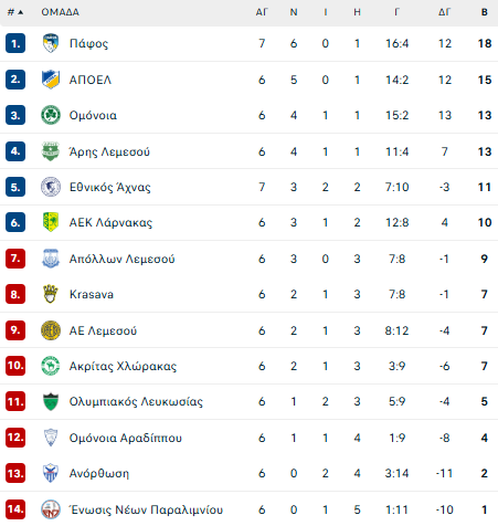 Ο Απόλλωνας φιλοξενεί στο στάδιο «Αλφαμέγα» την Ομόνοια Αραδίππου και στοχεύει μόνο στη νίκηπου θα τον ανεβάσει στην εξάδα ενώ η Ομόνοια Αρ θα παλέψει για να πάρει τουλάχιστον τον ένα βαθμό στην μάχη που δίνει για σωτηρία.