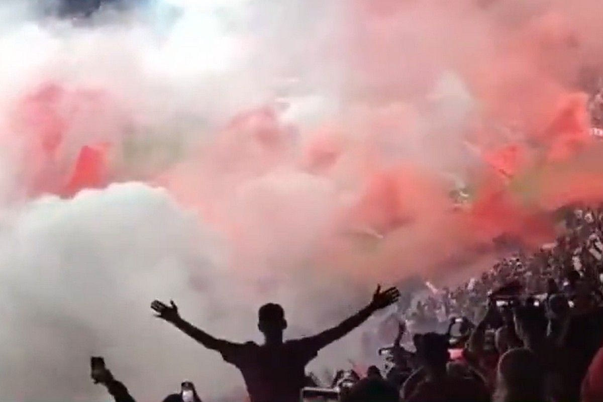 Το σκηνικό χάους συνέθεσαν βροχή από καπνογόνα, πυροτεχνήματα, μπουκάλια και πέτρες. Το γήπεδο ήταν γεμάτο από 25.000 οπαδούς, αλλά αγώνας δεν κατέστη δυνατό να διεξαχθεί, λόγω των βίαιων επεισοδίων που ξέσπασαν.
