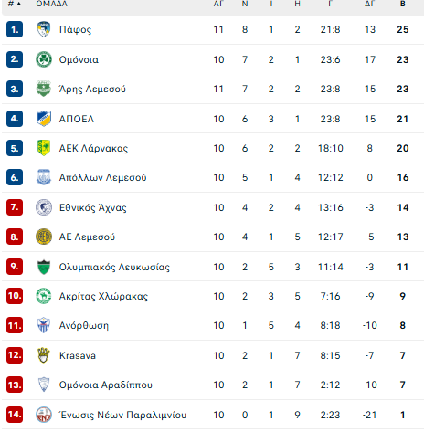 - Μάχες σε δύο μέτωπα. Για ανάσα οι γηπεδούχοι ,για πιο ψηλά οι φιλοξενούμενοι! Συνέχεια με Ομόνοια Αρ-Εθνικός, Ολυμπιακός-ΑΕΚ(Πρόγραμμα-βαθμολογία)
