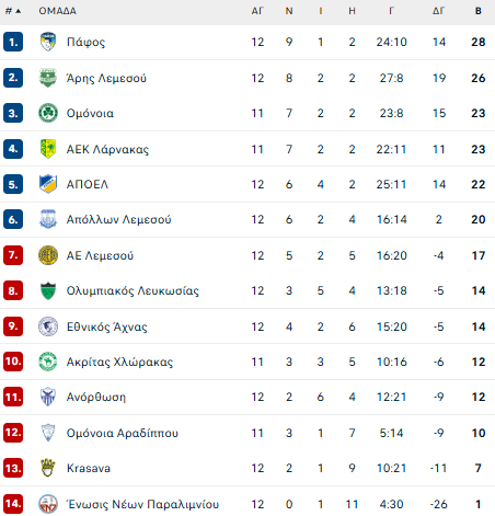 Φαβορί Ομόνοια και ΑΕΚ στα σημερινά παιχνίδα (Πρόγραμμα,βαθμολογία,συνέχεια)