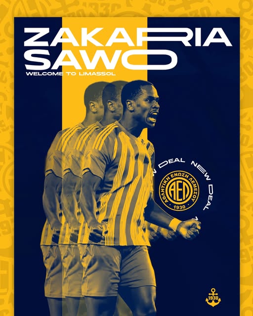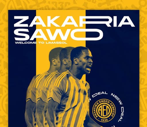 «Η Αθλητική Ένωση Λεμεσού ανακοινώνει την επίτευξη συμφωνίας με τη σουηδική ομάδα Djurgarden για τον δανεισμό του ποδοσφαιριστή Zakaria Sawo, μέχρι την ολοκλήρωση της τρέχουσας ποδοσφαιρικής περιόδου.