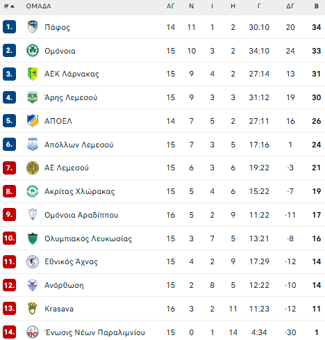 Tην Παρασκευή, με το δεξί μπήκε στο 2026 η Ομόνοια Αραδίππου, η οποία επικράτησε με γκολ στις καθυστέρησης της Freedom 24 Krasava ENY με 1-0, ανοίγοντας παράλληλα και την αυλαία της 16ης αγωνιστικής. Μια νίκη που βάζει περισσότερη πίεση στις άλλες ομάδες που βρίσκονται στην επικίνδυνη ζώνη