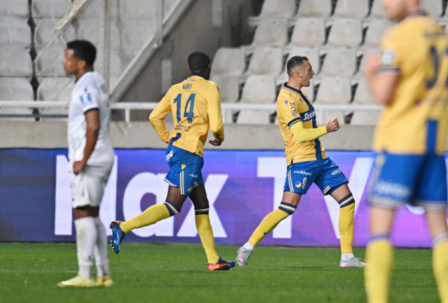Στο πρώτο ημίχρονο, ξεχώρισαν τα δύο δοκάρια και το χαμένο πέναλτι που απέκρουσε ο Περντρέου και μοιραίο … πρωταγωνιστή για τους «γαλαζοκίτρινους» τον Ματίας Τομάς που εκτέλεσε το πέναλτι και είχε τα δυο δοκάρια