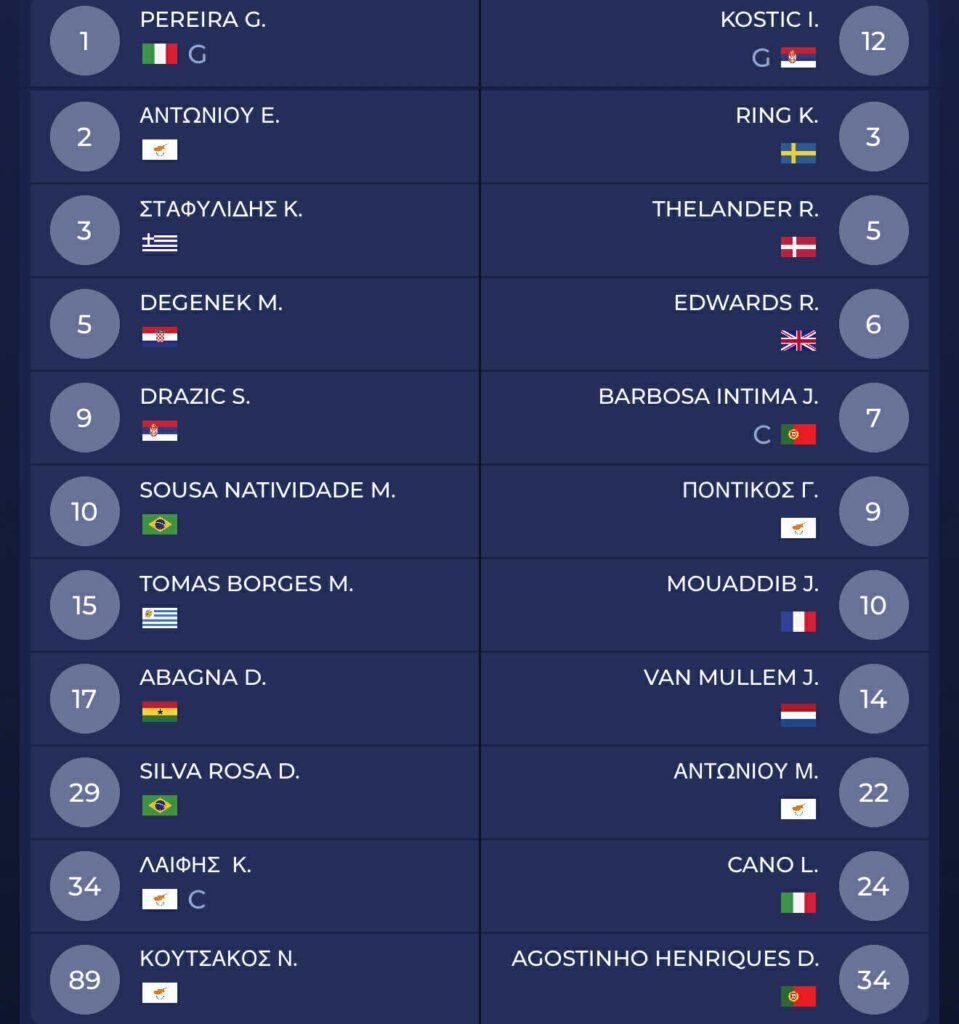 Οι 11αδες ΑΠΟΕΛ-Ομόνοια Αρ.(19:00)
