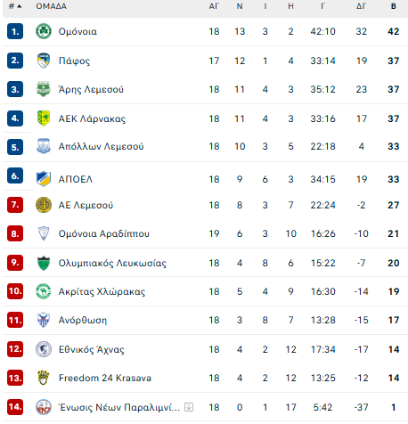 Με έκπληξη άρχισε η 19 αγωνιστική της Cyprus League by Stoiximan αφού στο ΓΣΠ δεν τα κατάφερε το ΑΠΟΕΛ που ήταν φαβορί κόντρα στην Ομόνοια Αραδίππου και ο γαλαζοκίτρινος κατήφορος καλά κρατεί.