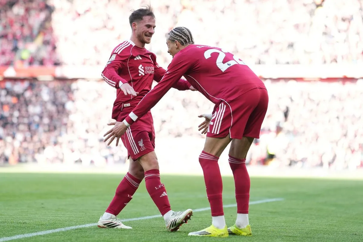 Η κόκκινη «μηχανή» δεν άργησε να πάρει μπροστά, αφού μόλις στο 5΄ο Εκτικέ εκτέλεσε από πλάγια θέση χαμηλά στην αριστερή γωνία για το 1-0. Η Λίβερπουλ αύξησε την πίεση κι έφτασε στο 2-0 στο 20΄, όταν ο Φαν Ντάικ νίκησε άπαντες στον αέρα από εκτέλεση κόρνερ και βρήκε δίχτυα με κεφαλιά. Στο 43΄ήταν η σειρά του Μακ Άλιστερ να προσθέσει το όνομά του στον πίνακα των σκόρερς, όταν με σημάδεψε το παραθυράκι της εστίας με απίθανο βολέ στο πιο όμορφο γκολ του ματς.