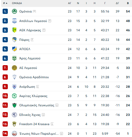 Στα παιχνίδια του Σαββάτου το ΑΠΟΕΛ πανηγύρισε τη νίκη στο ντέρμπι με την ΑΕΛ, σφράγισε τη θέση στην πρώτη 6άδα και έδειξε ότι μπορεί για καλύτερα πράγματα στην συνέχεια βάζοντας πίεση για τις θέσεις που οδηγούν στην Ευρώπη.