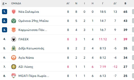 19:00 ΠΑΕΕΚ – Νέα Σαλαμίνα (απευθείας από τη Cytavision)