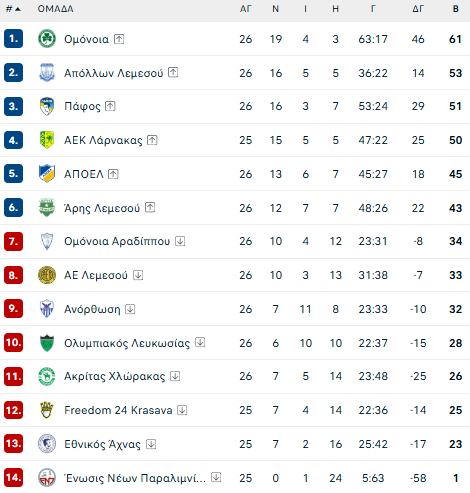 Με την ολοκλήρωση των αγώνων της Κυριακής στο πλαίσιο της 26ης και τελευταίας αγωνιστικής της Cyprus League by Stoiximan… έχουμε νέα δεδομένα για τη «μάχη» του τίτλου.
