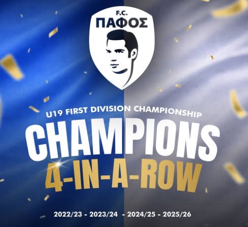 «Μετά τη σημερινή εκτός έδρας νίκη, η ομάδα μας Κ19 αναδείχθηκε για 4η συνεχή σεζόν Πρωταθλήτρια Κύπρου Συγχαρητήρια στους νεαρούς μας ποδοσφαιριστές, τους προπονητές τους και το προσωπικό για αυτήν την μεγάλη επιτυχία», έγραψε σε ανάρτηση της η Παφιακή ομάδα.