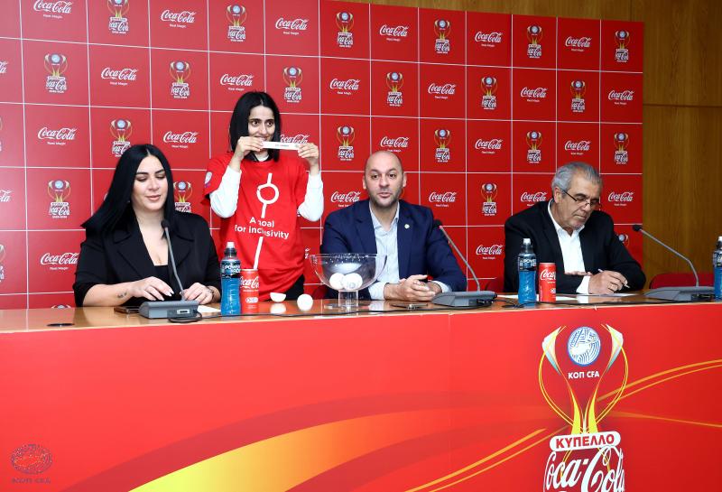 Πραγματοποιήθηκε σήμερα στο Συνεδριακό Κέντρο του Σταδίου ΓΣΠ η κλήρωση των αγώνων της ημιτελικής Φάσης του Κυπέλλου Coca – Cola Α’ – Β’ Κατηγορίας 2025 – 2026.