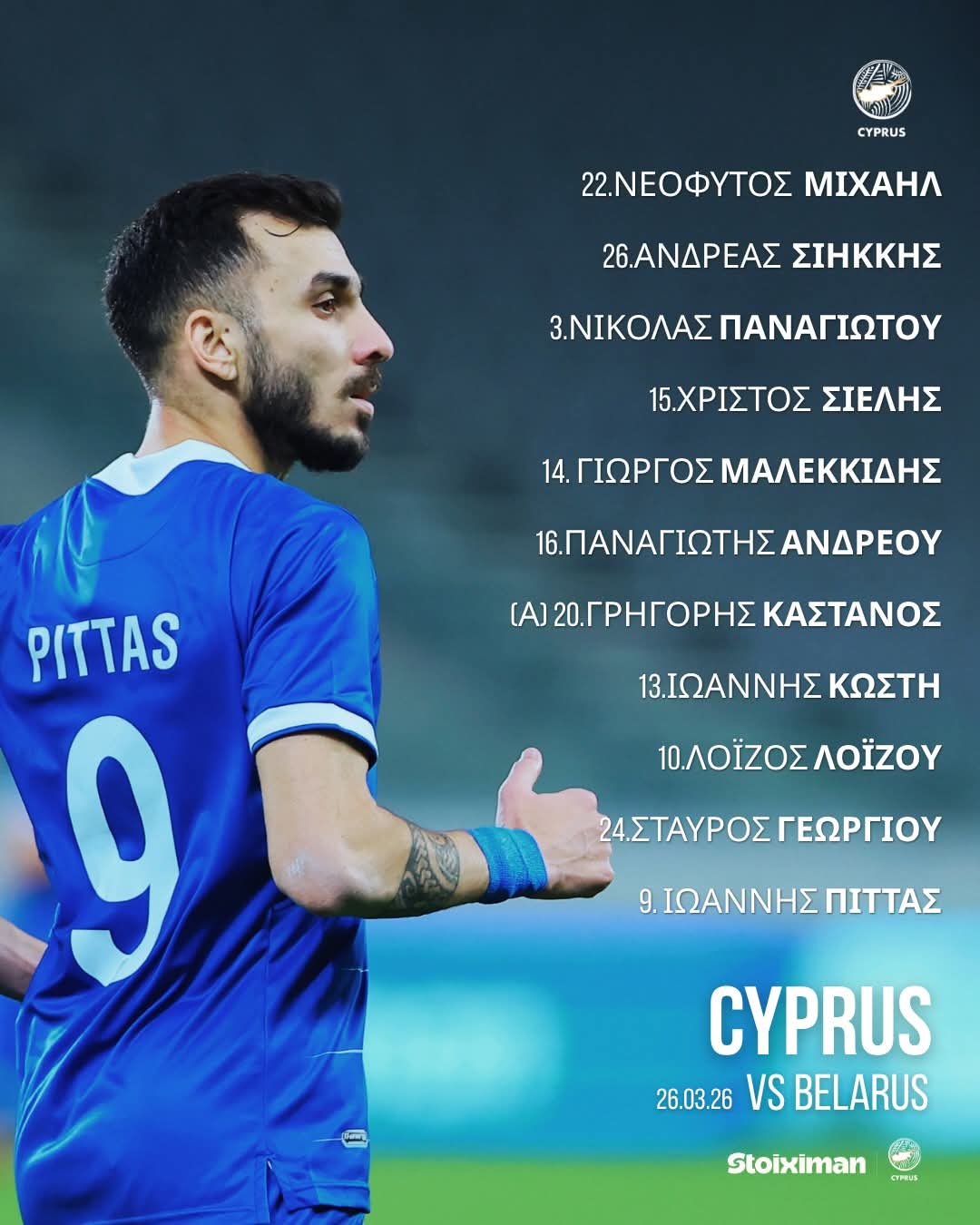 ΚΥΠΡΟΣ: Μιχαήλ, Σιήκκης, Παναγιώτου, Σιέλης, Μαλεκκίδης, Π.Ανδρέου, Κάστανος, Κωστή, Λοΐζου, Στ. Γεωργίου, Πίττας.