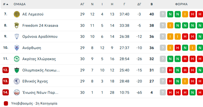ΒΑΘΜΟΛΟΓΙΑ Β΄ΟΜΙΛΟΣ