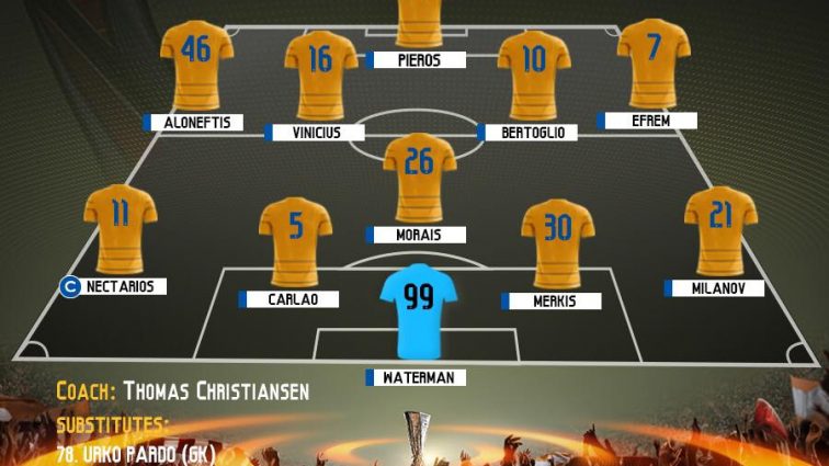 ΑΠΟΕΛ (Τ.Κρίστιανσεν): Βάτερμαν, Μιλάνοφ, Αλεξάνδρου, Καρλάο, Μερκής, Μοράις, Βινίσιους, Μπερτόλιο, Εφραίμ, Αλωνεύτης, Σωτηρίου