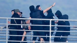 Στην αερογέφυρα του Πανθεσσαλικού έγινε πανικός, πραγματικές μάχες σώμα με σώμα. Ο φωτογραφικός φακός αποτύπωσε όμως τη στιγμής που οπαδοί των δύο ομάδων έδωσαν τα χέρια.Για να αρχίσει ο τελικός η ώρα 21:00 με μισή ώρα καθιστέρησης..